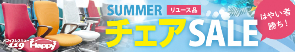 オフィス家具や家電、ビジネスホンなどのリユース事業を展開する株式会社トミザワ(本社:東京都江戸川区、代表取締役:池島 隆)が運営する、オフィス家具のリユースショップ 「オフィスレスキュー119 Happy」 では、人気のリユースオフィスチェアを対象に“SUMMERチェアSALE”を、店舗およびオンラインストアにて、7月1日(月)より開催いたします。