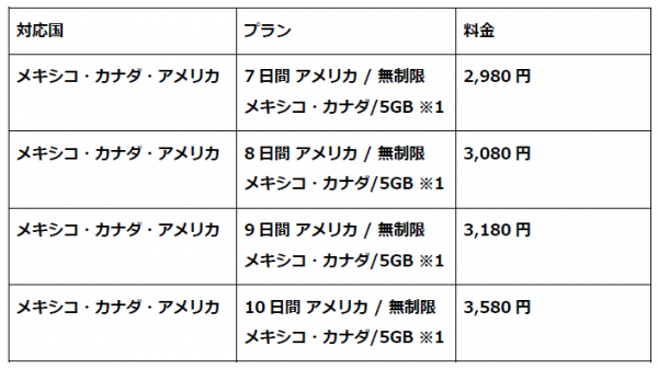 ※1 アメリカ高速データ無制限+現地通話+SMS無制限