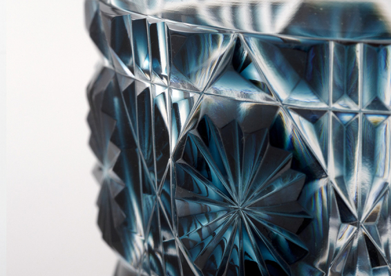 瑠璃と緑の二重被せは、通常1色の被せのところ2色の異なるカラーを被せてカットを施しています。濃淡の異なる2色が美しくグラデーションとなり、美しく艶やかな輝きが見る人を魅了します。