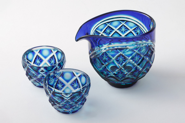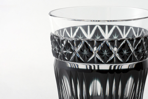 そして100年後の1985年、薩摩切子は、島津家の主導で復刻が試みられました。復刻が進む一方で現代のオリジナルの薩摩切子も次々と誕生し、なかでも薩摩切子の生地は透明ガラスに色ガラスを厚く被せた「色被せ(いろきせ)」という技法で作られます。収縮の度合いが異なる2色のガラスの膨張を揃えながら吹くことは通常でも難しい上に、生地の裏側が見えないので手に伝わる感覚と微妙な音の揺れだけを頼りに繊細な模様を削る黒切子は、まさに五感が生み出す卓越した手技、究極の切子と言えるでしょう。
