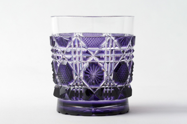 切子の代表的紋様の一つである籠目紋の中でも最も好まれた八角籠目紋様は、竹籠の八角形の編み目に由来し、六角籠目と並び多用されている切子紋です。