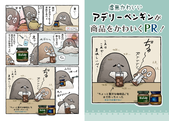 エイノバ株式会社(本社:東京都千代田区、代表取締役社長:安倍義人)がマネジメントするクリエイターおぞねが描く人気キャラクター「虚無かわいいアデリーペンギン」が味の素AGF株式会社のインスタントコーヒー商品「ちょっと贅沢な珈琲店」や「ブレンディ」のPR漫画を制作し、2024年6月28日に投稿した(おぞねのXアカウント(@kedama_tori_ki)にて)。