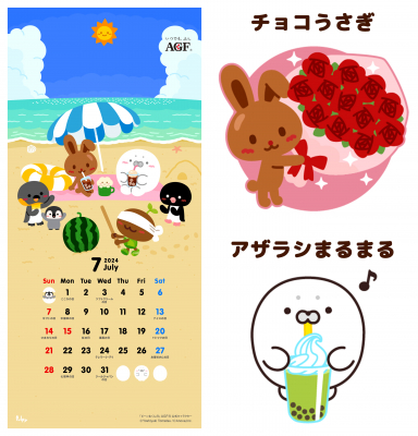 エイノバ株式会社(本社:東京都千代田区、代表取締役社長:安倍義人)がマネジメントするクリエイターパルピーが描き下ろした7月用のカレンダーが2024年6月30日(日)より味の素AGF LINE公式アカウントにて無料配信されました。