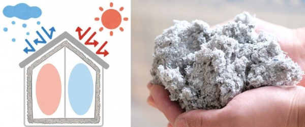 新聞紙を主原料とする綿状の木質繊維系断熱材です。綿状にすり潰した新聞紙にホウ酸・ホウ砂、はっ水材を加えて混ぜて作られ、断熱性だけでなく、調湿性・吸音性・防火性などにも優れているのが特長です。石油燃料を使用せず、電気エネルギーのみを用いて製造され、熱(溶解・乾燥)、水(洗浄・冷却)なども一切使用しないため、他の断熱材に比べ製造時のエネルギー消費量が圧倒的に低く、地球環境にやさしい断熱材です。