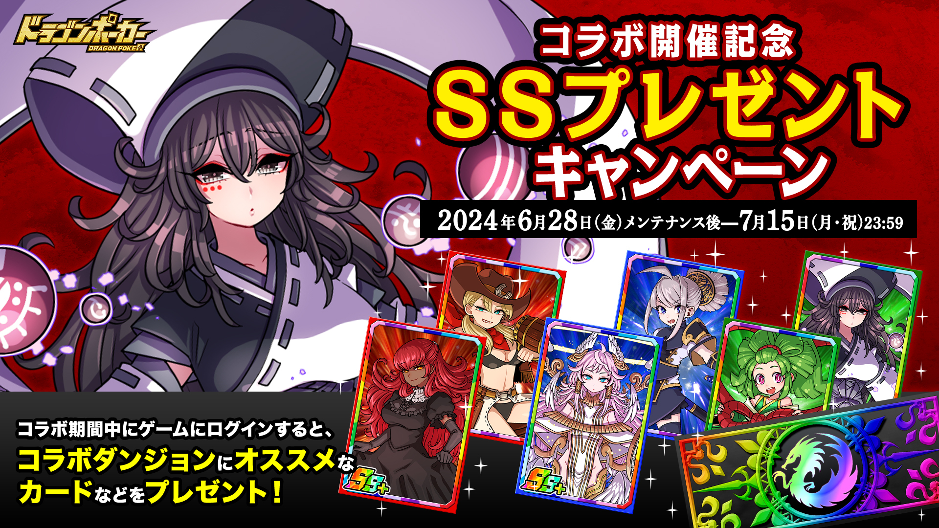 期間中、全ユーザーに「竜石最大57個」や「SSレアガチャチケット」などのアイテムをプレゼント!友達を誘ってドラゴンポーカーを楽しみましょう!