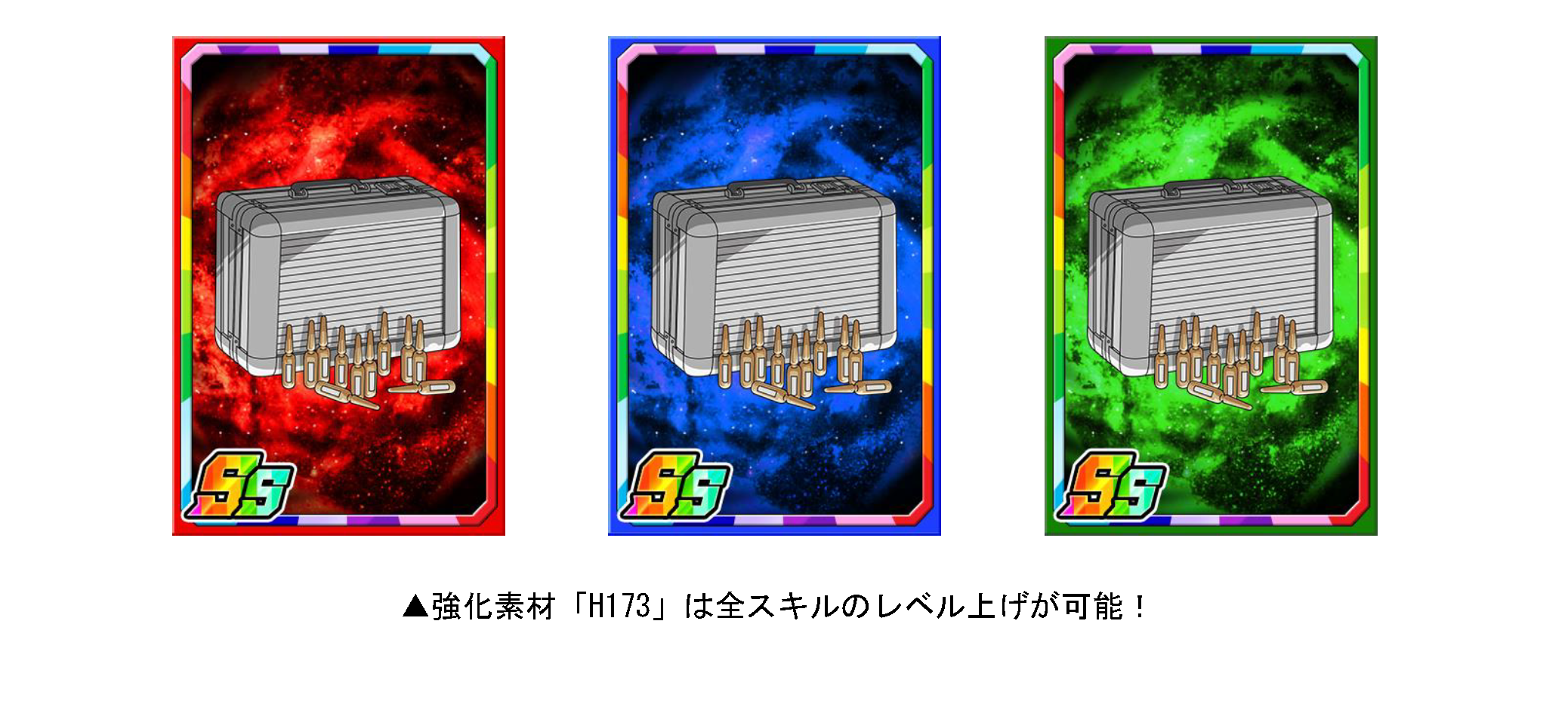 「ひぐらしP」を使い、ポイント交換または素材ガチャを回すと限定強化素材「H173」を入手できます。「H173」は経験値がアップするだけでなく、全スキルのレベル上昇率がアップします。