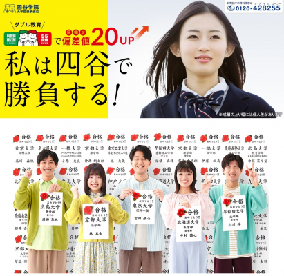 予備校四谷学院は、40年以上の実績がある四谷学院が運営する『大学受験予備校』で、高校生以上の大学受験を目指している方を対象に、55段階個別指導と科目別能力別授業というほかにはない『ダブル教育』を提供しています。