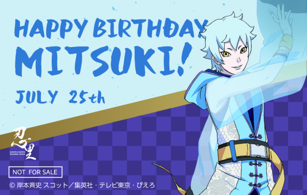 本イベントでは、これまでに忍里でイベントを行ってきたキャラクターたちの誕生日をお祝いする、忍里オリジナルのバースデーカードをご用意いたします。7月は「日向ネジ」「犬塚キバ」「うちはサスケ」「ミツキ」をお祝いします!