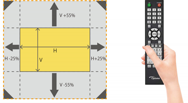 ■リモコンで制御可能な電動式のレンズシフト機能搭載(垂直方向 ±55%・水平方向 ±25%)。