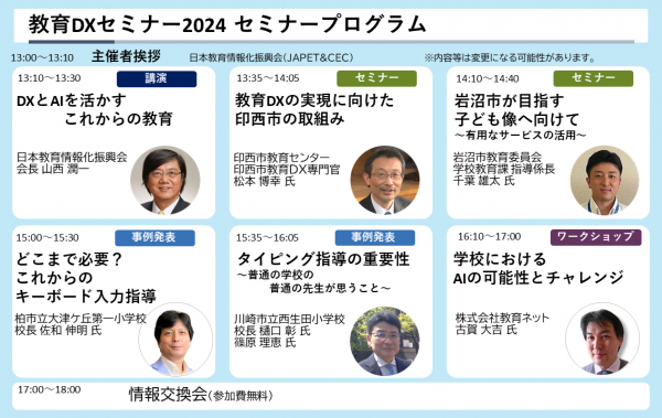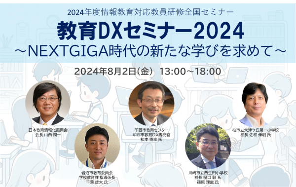 株式会社教育ネット(神奈川県横浜市都筑区 代表:大笹いづみ)は2024年度情報教育対応教員研修全国セミナー「教育DXセミナー2024~NEXTGIGA時代の新たな学びを求めて~」(主催: 一般社団法人 日本教育情報化振興会、協賛:株式会社教育ネット)を8月2日(金)に機械振興会館にて開催いたします。
