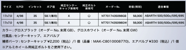 イタリアンホイールブランド、MAKが新たに発売するENTITY(エンティティー)はMAK製品ラインナップの中ではSPORT LINEシリーズにカテゴライズされるホイールで、車種を限定したデザインワークが、ABARTH500/500e/595/695向けにベストマッチするサイズ設計、フィット感を提供します。カラーはグロスブラックとグロスホワイトの2色展開。