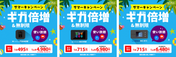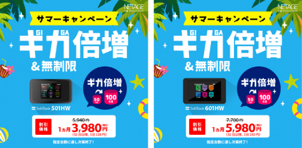 国内向けWi-Fiルーターのレンタルサービス「NETAGE(ネットエイジ)」(https://www.netage.ne.jp/) を提供する株式会社モバイル・プランニング(本社:東京都中央区 代表取締役:古賀広幸 以下モバイル・プランニング)は、人気機種のデータ通信容量(ギガ)を倍増&最大32%OFFで販売する「サマーキャンペーン」を、2024年7月8日より開催いたします。