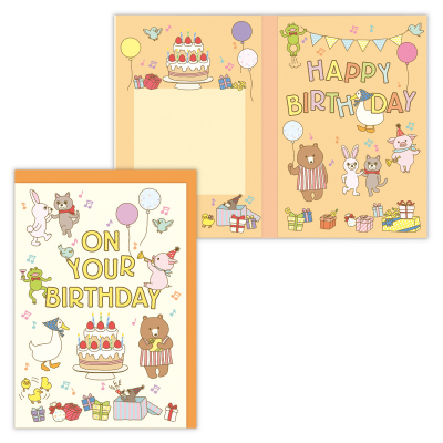 うさぎや猫、クマ、アヒルなどさまざまな動物たちが誕生日を盛り上げます。動物たちのお祝いボイス入り!