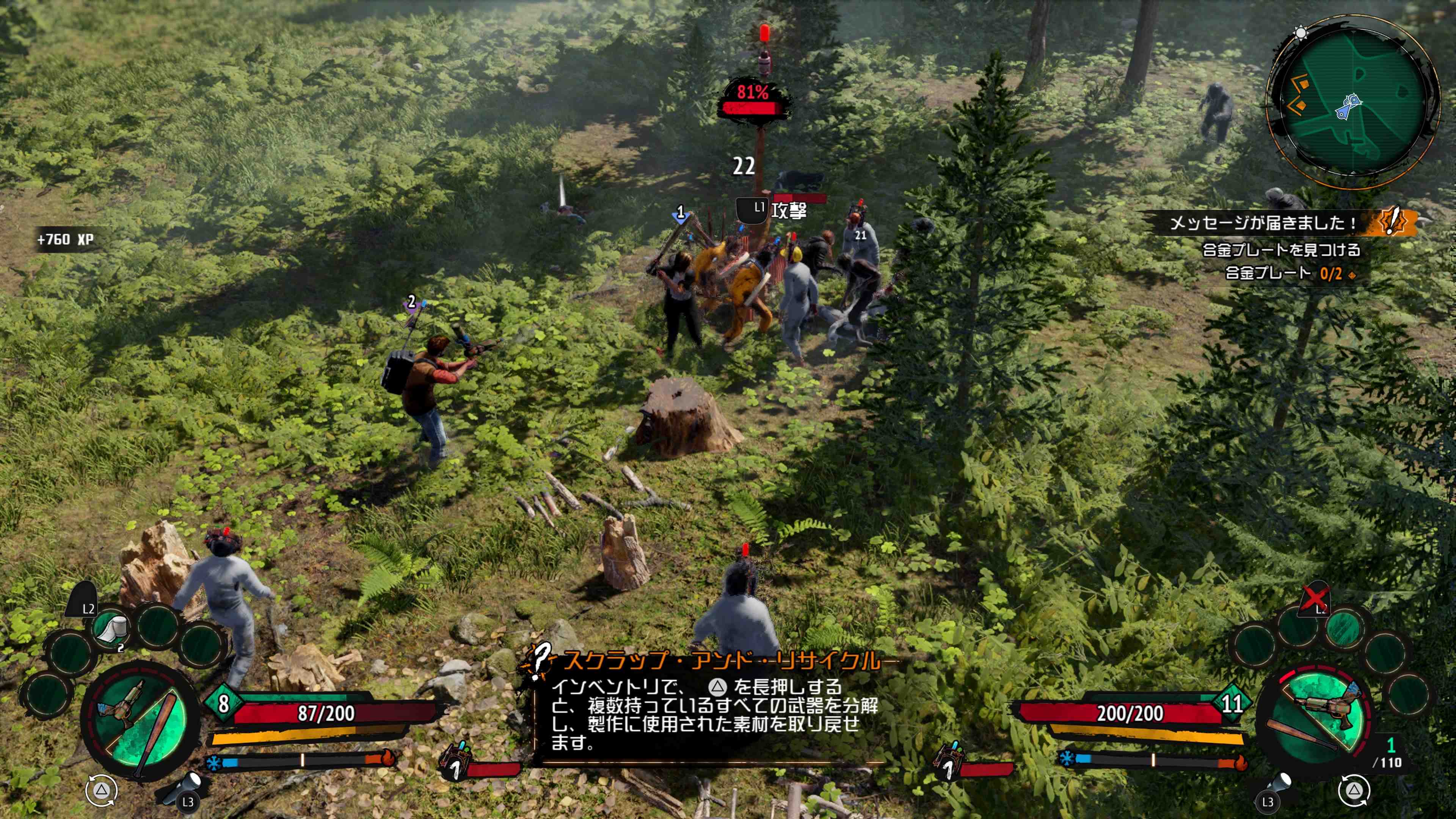 製品版 無料アップデート:7月8日の無料アップデートでは新たな武器とキャンプ防衛用建物が追加され、戦闘や基地防衛における戦略の幅がより広がりました。敵がより手強くなる新難易度「ハード」も追加されたので、より歯ごたえのある終末世界のサバイバルを楽しめます。