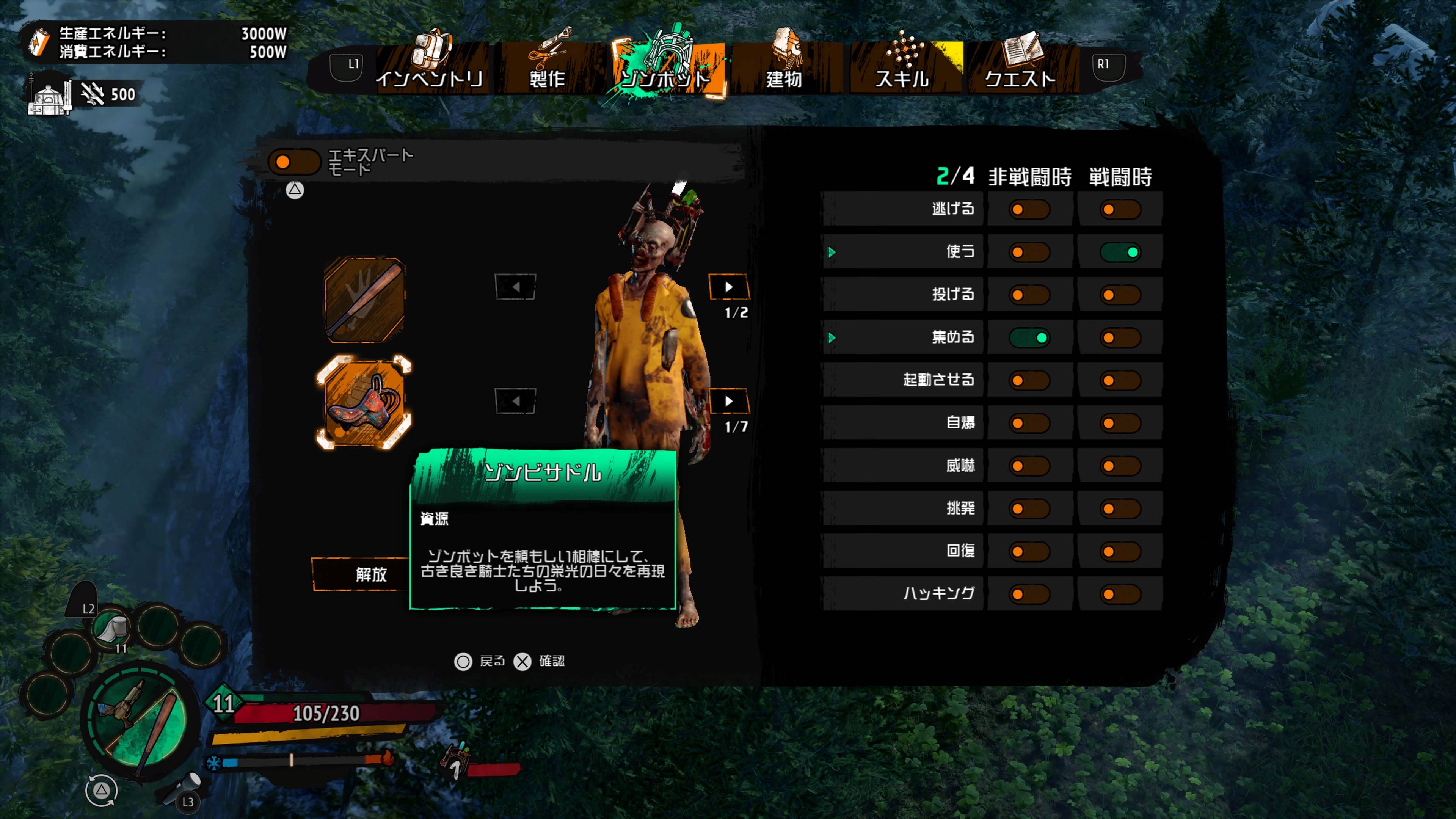 無料体験版:ゲーム開始からキャンプ建設の序盤までがプレイ可能で、ゾンビとの戦闘、アイテムの収集とクラフト、基地の建設、そして仲間にしたゾンビ、通称「ゾンボット」のプログラミングが楽しめます。オフライン協力プレイに対応しているので、2人で遊ぶことも可能です(製品版のみオンラインプレイに対応しています)。