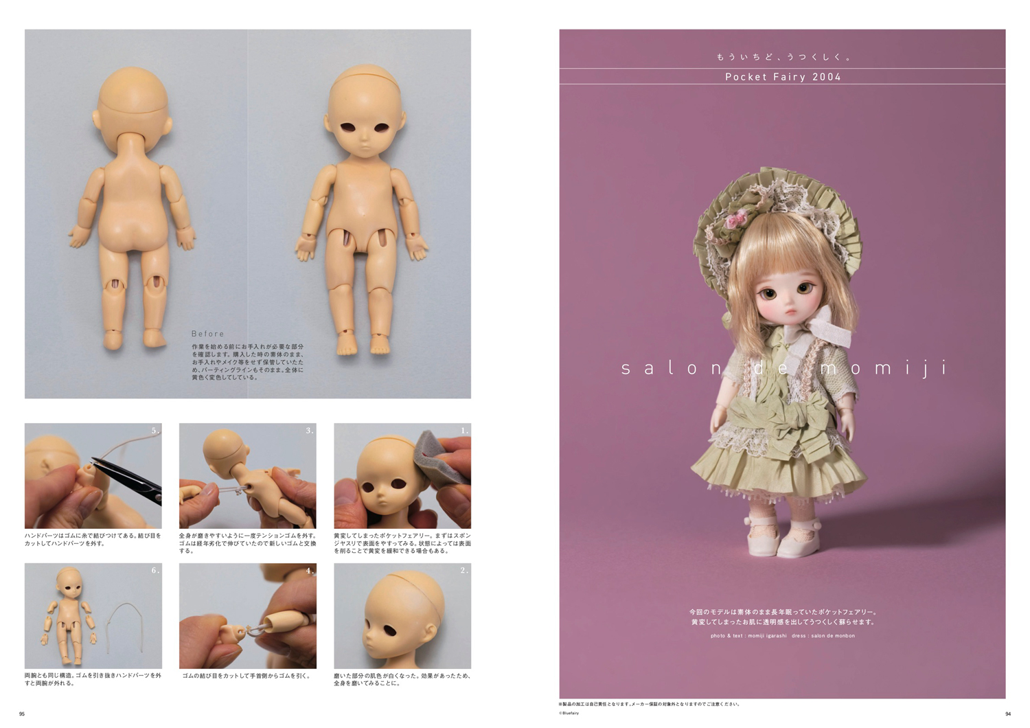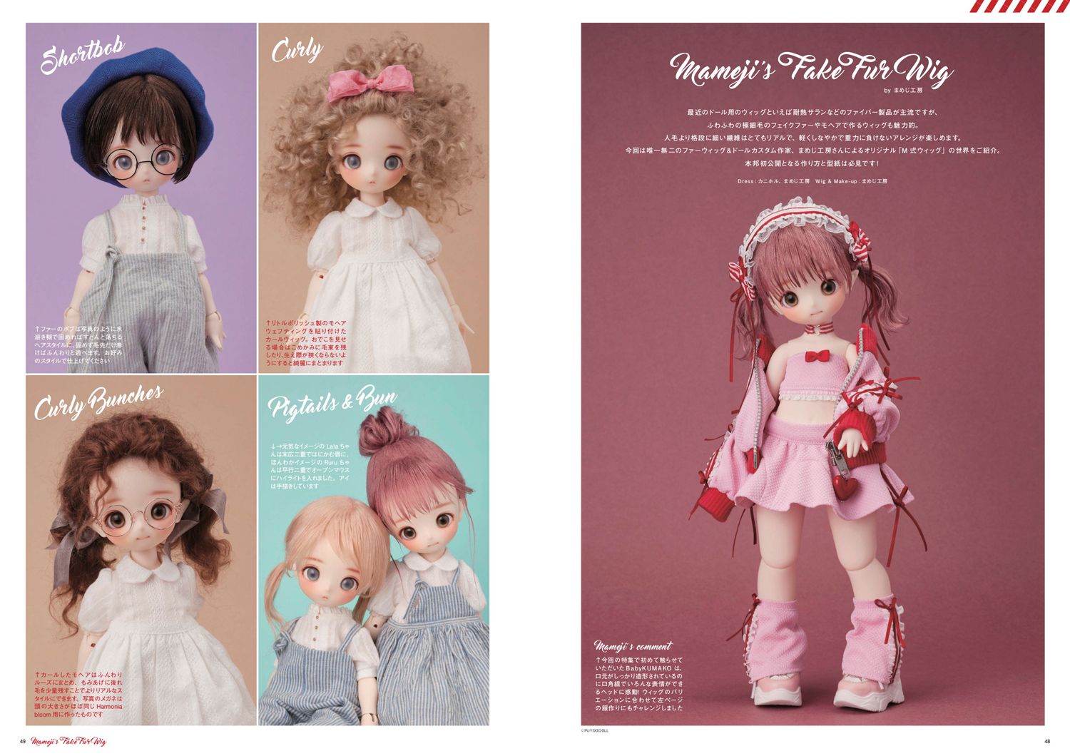 そして、今号でイチオシの特集が、まめじ工房さんによる「ファーウィッグの作り方」レッスン! 植毛やウェフティングより圧倒的に早く手軽に作れるファーウィッグは、カジュアルなヘアスタイルに最適。ひねる、盛るなどフィーリング重視の髪型も楽しめます。Baby KUMAKOやHarmonia bloomにぴったりな約7inchウィッグの型紙も掲載します。