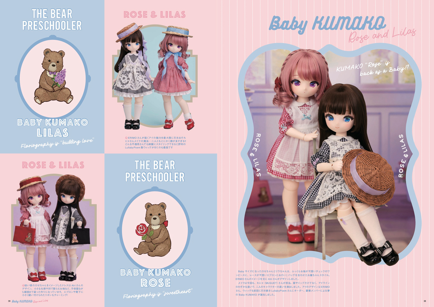 第二特集は「Baby KUMAKO」。Dollybird vol.33のKUMAKO「Rose」ちゃんが、ベビくまサイズで帰ってきました! 衣装デザインはAtriさん、メイクデザインれにゃさん(MUGUET)、ウィッグはLullaby Poemさん、コンセプトデザインERIMOさんというスペシャルなコラボレーションモデルは必見です。さらに、新旧どちらのベビくまサイズにも着せられる、