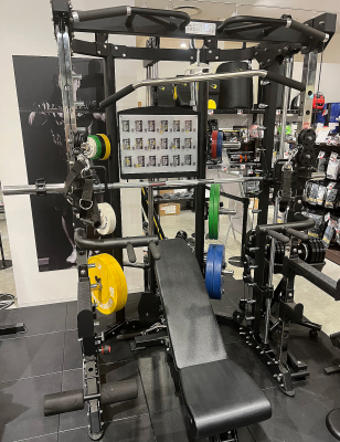 スミスマシン、ケーブルクロスマシン、ハードパワーラック、ラットマシンを1台に詰め込んだ総合トレーニングマシンが完成。スミスマシン、ケーブルクロスマシン、フリーウエイト、自重トレーニングなど1台で4種類のトレーニングが可能に。