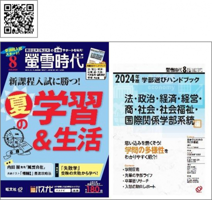 月刊 「螢雪時代」 では、新教育課程最初の2025年入試合格を目指す受験生のために、国公立大&私立大入試の効果的な対策法や学習計画、最新入試情報、大学の学問紹介など、タイムリーな記事を毎月お届けします。