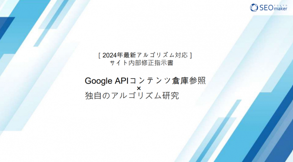 東京SEOメーカーでは、Google API コンテンツ倉庫の情報を参照にしたものに加え独自のGoogleアルゴリズムの研究によるSEOサイト内部修正指示書をご提供しています。