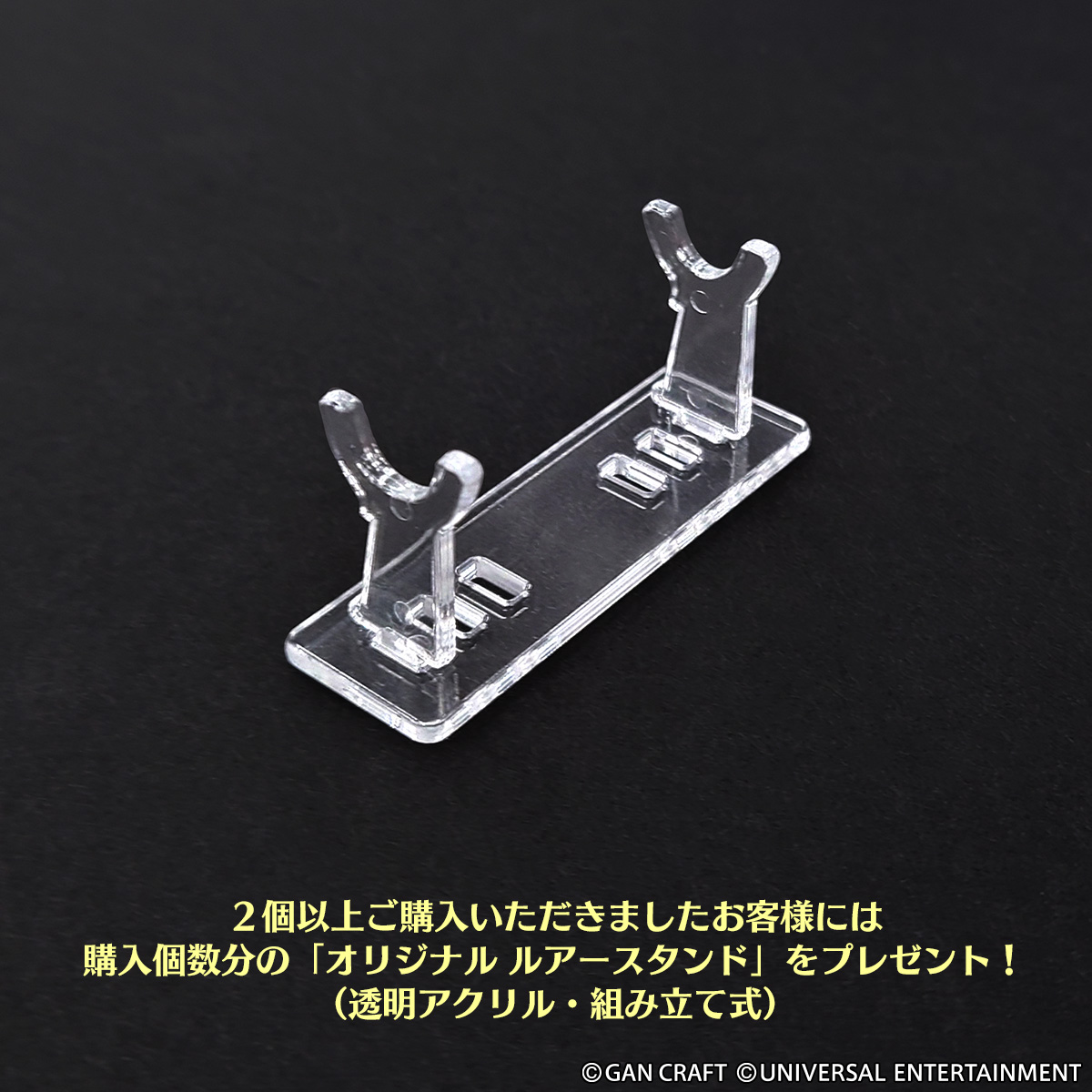 2個以上ご購入いただきましたお客様には、購入個数分の「オリジナルルアースタンド」をプレゼント!(透明アクリル・組み立て式)