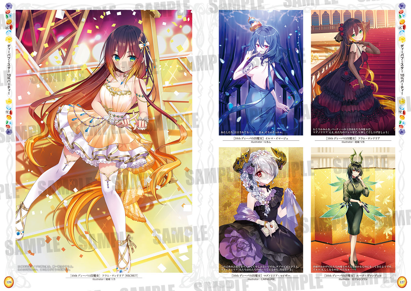 本書では2020年1月から2024年7月までに登場した300点を超える詩姫のカードイラストを、最新商品「ディーバブースター 10thパーティー」含め完全網羅! 豪華イラストレーター陣が手掛ける美麗イラストを大判掲載で余すところなく堪能できます!