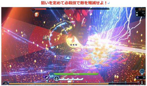 ゲージを貯めて必殺技を繰り返し、群がる敵をド派手に殲滅してください。