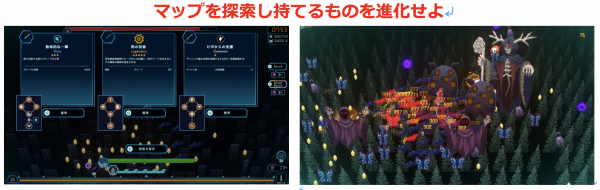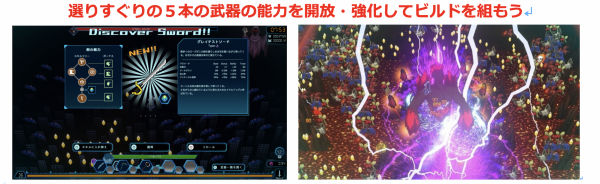 従来のサバイバー系ゲームでお馴染みの少しずつ強くなる面白さに加え、異なる能力を持つ武器を組み合わせる楽しさや狙いすました必殺技でド派手に敵を蹂躙する爽快感が味わえます。