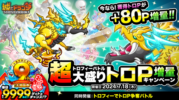 上記期間中、すべてのトロフィーバトルを対象に、獲得できる“トロP”が通常よりも80P増量します。