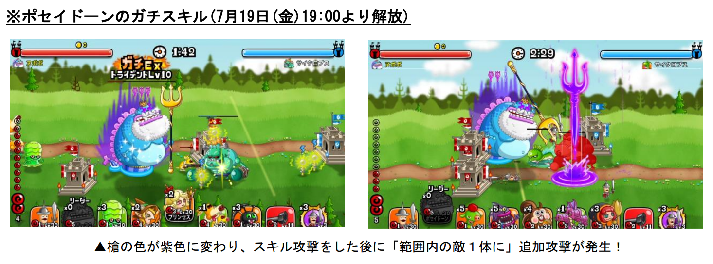 7月19日(金)19:00より、ポセイドーンのキャラレベル上限と「ガチスキル」が解放!それに先駆け、トロフィークラス最上位となる「DX」に、新たにポセイドーンが18日(木)メンテナンス後より追加されます。それらを記念し、ポセイドーンを対象にした「トロPチャージ増量キャンペーン」や「すくすく育成キャンペーン」、「キャラタマゴCP半額販売」が期間限定で実施されます。