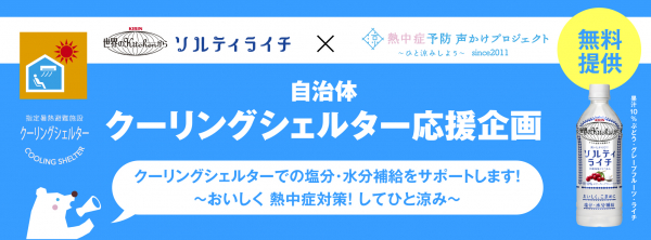 熱中症予防声かけプロジェクト事務局(所在地:東京都渋谷区、一般社団法人ジャパンデザイン内、事務局長/社会起業家:山下太郎:以下本プロジェクト)は、キリンビバレッジ株式会社(所在地:東京都中野区、社長 井上一弘)と連携し2024年7月11日(木)から熱中症対策飲料である「キリン 世界のKitchen から ソルティライチ 500mlPET」と「オリジナル温度計付きカード」を、全国22都道府県 23自治体のクーリングシェルターにて無料提供を実施しています。