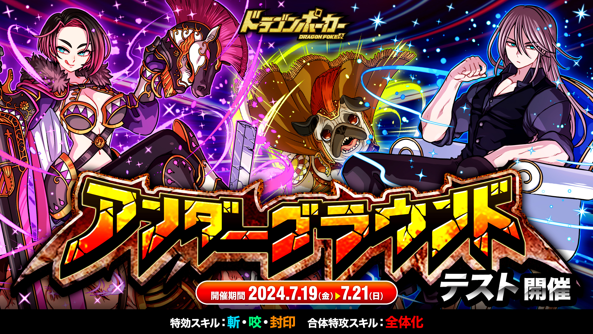 株式会社アソビズム(本社:東京都千代田区、代表取締役:大手智之)は、App Store・Google Playにて好評配信中のリアルタイム合体カードバトル『ドラゴンポーカー』で、2024年7月19日(金)より「アンダーグラウンド」をテスト開催いたします。
