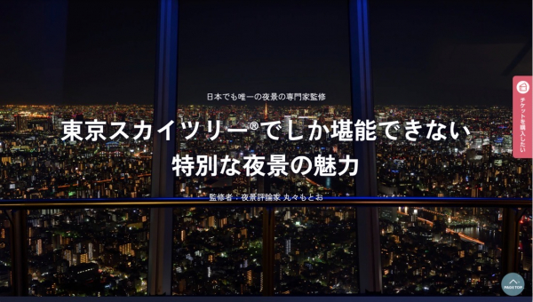 2024年7月22日(月)、一般社団法人 夜景観光コンベンション・ビューローでは、東京スカイツリー(R)の夜間の魅力向上を目的に、当社代表理事で夜景評論家・丸々もとおが監修。公式ウェブサイト「A Night at TOKYO SKYTREE(R)」を監修しました。本企画は海外から多く訪れる訪日旅行者向けに、日本ならではの夜景鑑賞文化と楽しみ方や、スカイツリーの特筆すべき夜景の魅力を解説しています。また、WEB掲載画像は夜景フォトグラファー・丸田あつしによる撮り下ろし。360度のパノラマや夜のシークエンスなど、ひとつひとつこだわり抜いた写真となっています。監修者曰く、「スカイツリーの特徴は何と言ってもその“高さ”と“立地”。美しい夜景を眺めるにあたっても重要なポイントとなることは言うまでもありません。その2つの特徴と、スカイツリー自身のシンボルとしての魅力に焦点を当てながら、夜景専門家だからこそ知るスカイツリーならではの夜景鑑賞ポイントをお届け。みなさまを極上の夜景旅行に誘います。」と語っている。本サイトでは、同展望台が有する夜景観光ブランド「日本夜景遺産」「日本百名月」、外観のライティングや夜間イベントなど広く紹介しています。今後も更なるボリュームアップと共に展開いたします。