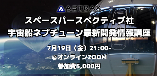 世界中の人々の夢を宇宙で実現させる民間宇宙サービスプラットフォームを提供する宇宙ベンチャー企業株式会社ASTRAX(アストラックス、以下 ASTRAX、本社:神奈川県鎌倉市、代表:代表取締役・民間宇宙飛行士 TAICHI(山崎大地))は、2024年7月19日、ASTRAX ACADEMYの特別講座として、スペースパースペクティブ社の気球型成層圏宇宙船「ネプチューン」の最新開発情報をASTRAX代表で民間宇宙飛行士のTAICHIがオンラインで解説する講座を開催しました。