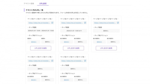 メッセージ配信・ステップ配信・テンプレート内に設置したURLに表示期限やアクションの設定が可能に。