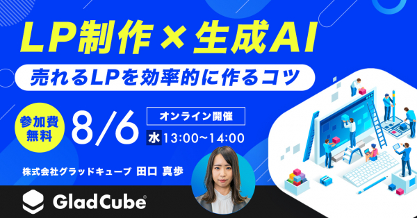 株式会社グラッドキューブ(本社:大阪市中央区 代表取締役 CEO 金島 弘樹 以下:グラッドキューブ)は、2024年8月6日(水)13:00よりオンラインセミナーを開催いたします。