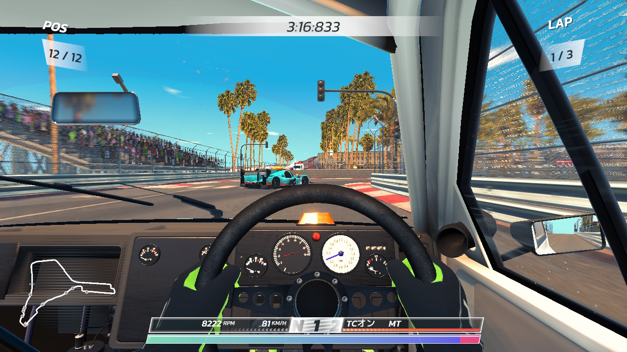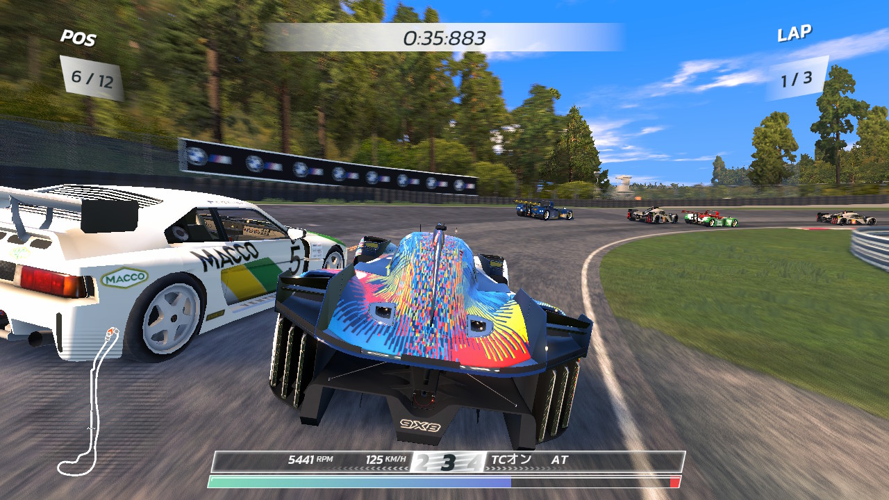 ラップタイム更新を目指すホットラップモードの他に、若手ドライバーとしてモータースポーツの頂点を目指して歴代の名ドライバーたちと競い合うキャリアモードも搭載しています。