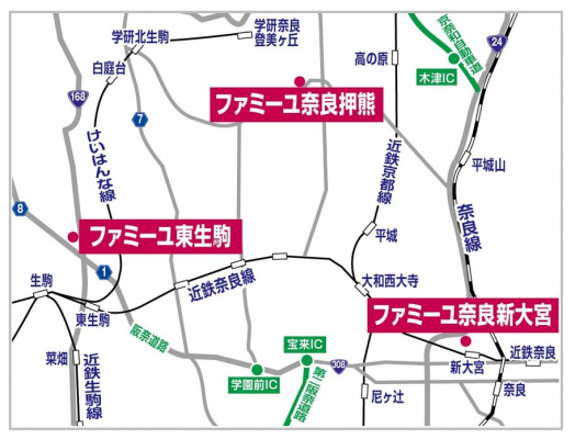 (地図)奈良県内では3店舗での展開となる