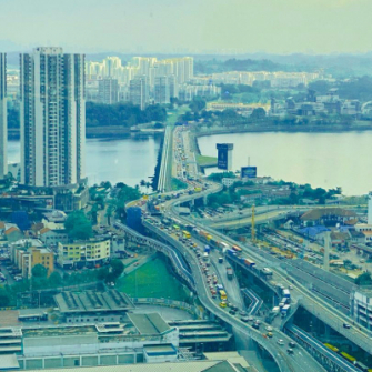 マレーシア・ジョホールバルは東南アジアの金融センターであるシンガポールの対岸に位置し、シンガポールとの距離もわずか1kmに満たず、陸路(橋)でつながっているという立地が特徴的であるため、物価や賃料の安いマレーシアに住んで賃金の高いシンガポールに毎日通勤する人が数多くいます。日本では、サッカー日本代表が初めてワールドカップ出場を決めた「ジョホールバルの歓喜」の舞台として有名です。