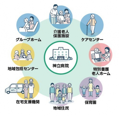 青洲会グループは、神立病院をはじめ、老人保健施設、身体障害者養護支援施設など、12の関連施設から成り立ち、“24時間365日心豊かな地域づくりに貢献する”をモットーに運営をしています。また、かすみがうら市と基本協定を結び、2027年度の開業を目指して、神立駅近くへの移転を進めています。地域の方々の生活をサポートする施設として、地域社会に密着した医療の提供を目指しています。