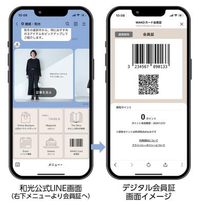 今回、広く普及しているLINEから利用可能な「デジタル会員証」サービスを導入することで、カード管理のご負担なく会員証をご利用いただけるのに加え、アプリ内での会員登録やポイントの確認が可能になるなど、和光会員の皆さまにスムーズに会員サービスをご利用いただけます。今後も和光は、より一層のお客さまの利便性向上と、データを活用したお客さまひとりひとりに合わせた1to1の“接遇”の実現を目指し、取り組んでまいります。