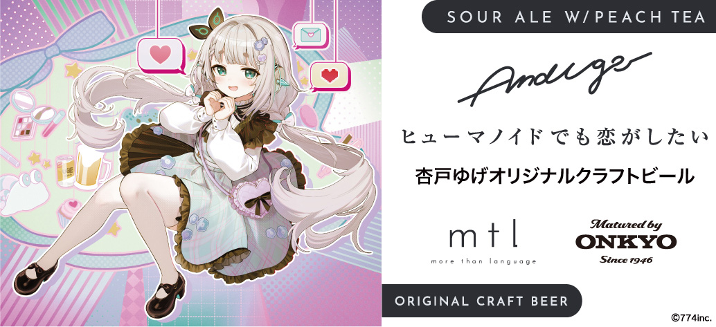 今回、新たな音楽食品ビジネスについて、「more than language」と手を組み ななしいんく所属VTuber『杏戸ゆげ』※1の楽曲「ヒューマノイドでも恋がしたい!」を聴かせ、杏戸ゆげ×more than languageのオリジナルレシピによる楽曲加振オリジナルクラフトビール(※)『ヒューマノイドでも恋がしたい』として“Matured by Onkyo”商品を限定発売することが決定しましたのでお知らせいたします。