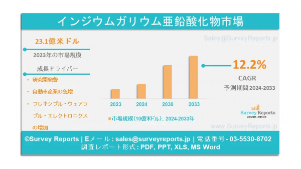 サーベイレポート合同会社は、市場予測評価を提供する2024年7月の調査レポート「酸化インジウムガリウム亜鉛市場」を発表しました: この調査レポートは、酸化インジウムガリウム亜鉛市場の予測評価を提供します。酸化インジウムガリウム亜鉛市場の成長促進要因、市場機会、課題、脅威など、いくつかの主要な市場ダイナミクスをハイライトしています。