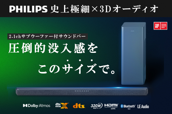 Philipsから極細サラウンドサウンドバー登場