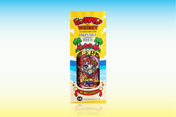 ビックリマン地方創生プロジェクト第4弾として実現した今回のコラボレーションでは、「ビックリマンウイスキー OKINAWA ISLAND BLUE」の購入特典として、沖縄色満載の特別仕様となったオリジナルデザインのビックリマンBIGシールをご用意。