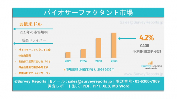 サーベイレポート合同会社は、2024年8月に調査レポート「バイオ界面活性剤市場」を発表しました: この調査レポートは、バイオ界面活性剤市場の予測評価を提供します。バイオ界面活性剤市場の成長促進要因、市場機会、課題、脅威など、いくつかの主要な市場ダイナミクスをハイライトしています。