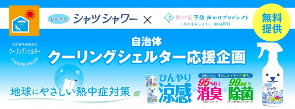 自治体クーリングシェルター応援企画は、改正気候変動適応法に伴い、4月の「熱中症特別警戒アラート」運用開始に合わせて始まった、クーリングシェルター(指定暑熱避難施設)の設置や運用に頑張っている自治体に対し、「具体的な熱中症対策グッズ」を本プロジェクトのスペシャル応援企業と連携し商品代金や送料など全てを無料で提供する事により、自治体のクーリングシェルターを中心とした、様々な熱中症予防の啓発活動を応援し、その結果、“官民一体で熱中症による被害者を減らす”企画になります。