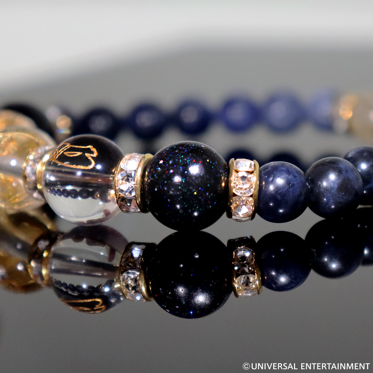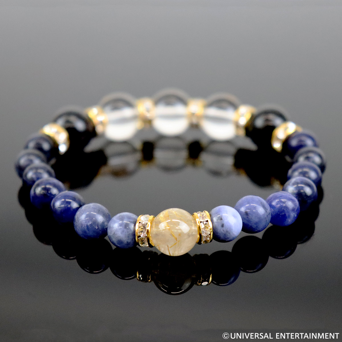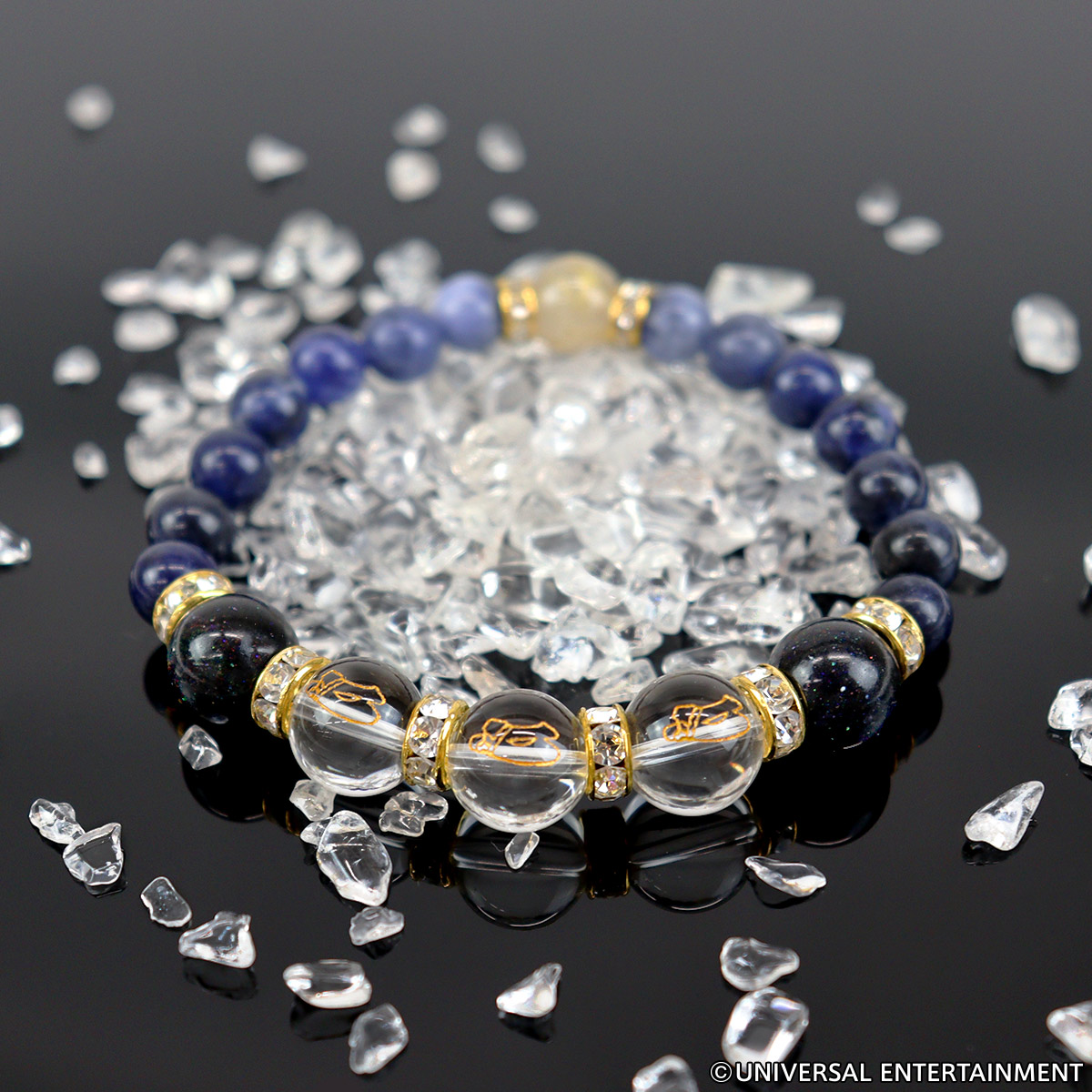 さらにその周囲には魔除けのパワーストーンとして有名なソーダライトをチョイス。ハナビ筐体のパネルをイメージして、少しずつ色の違うソーダライトをグラデーション状に配置しました。また、グラデーションにすることで、希望や願いを叶えるエネルギーを生み出す効果も得られます。