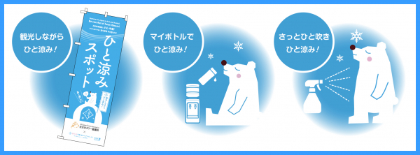 ・冷感スプレーをタワー内またはイベント実施時の会場に設置し、気軽にひと涼みを体験してもらうアクシ