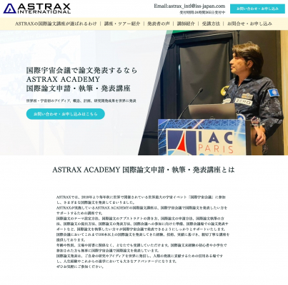 世界中の人々の夢を宇宙で実現させる民間宇宙サービスプラットフォームを提供する宇宙ベンチャー企業株式会社ASTRAX(アストラックス、以下 ASTRAX、本社:神奈川県鎌倉市、代表:代表取締役・民間宇宙飛行士 TAICHI(山崎大地))は、宇宙ワーママ(R)(所在地:東京都文京区、代表:川上泰子)及び合同会社ASTRAX INTERNATIONAL(アストラックスインターナショナル、以下ASTRAX INTERNATIONAL、本社:神奈川県鎌倉市、代表社員・民間宇宙飛行士TAICHI(山崎大地))と協力し、ASTRAXの教育コンテンツ「ASTRAX ACADEMY」の講座の一つである「国際論文申請・執筆・発表講座」のランディングページを完成させ、2024年7月26日より公開したことをお知らせいたします。